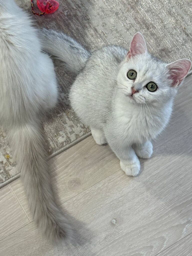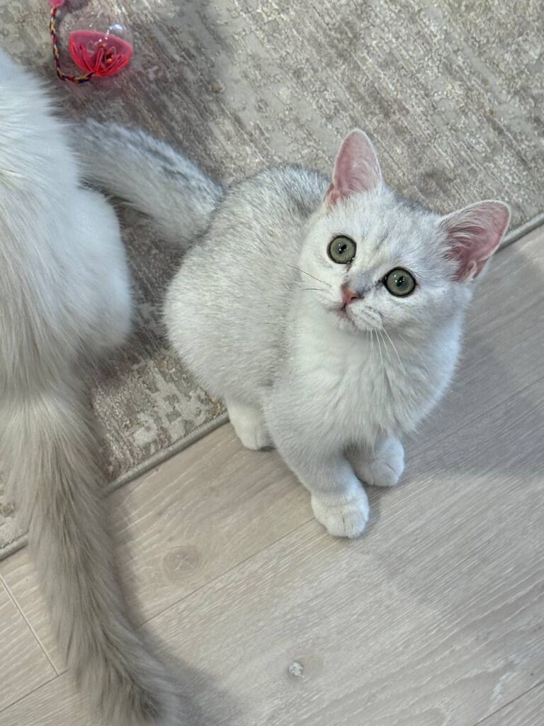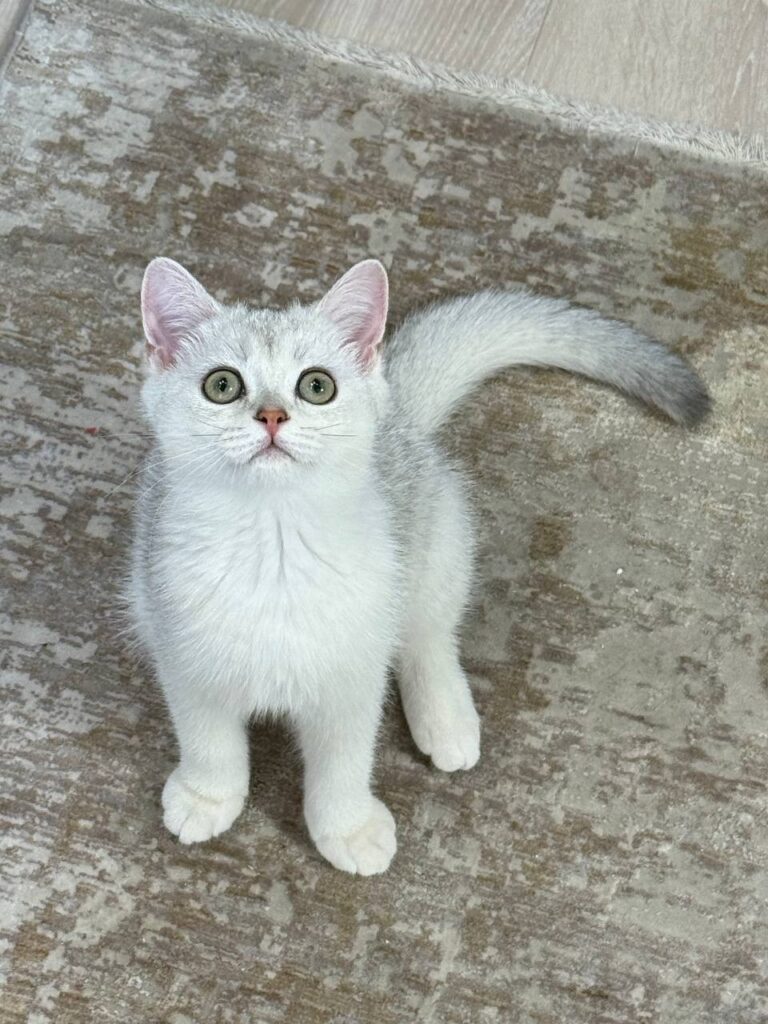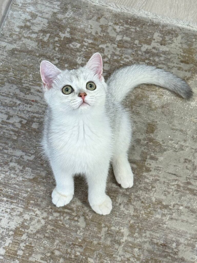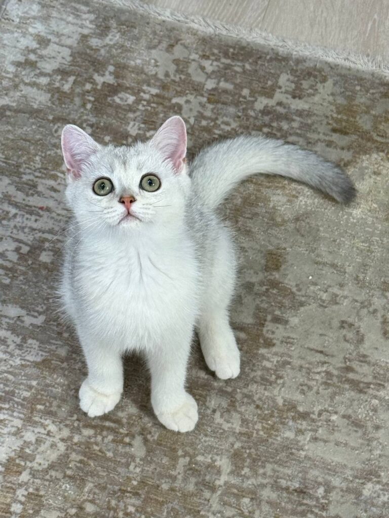 This charming little kitten is a delightful example of the British Shorthair breed—round-faced, plush-coated, and absolutely irresistible. Even at such a young age, it carries itself with that calm, dignified air that makes the British Shorthair one of the most beloved cat breeds in the world. With its soft silver fur, wide round eyes, and gentle expression, this kitten could easily win over anyone’s heart.