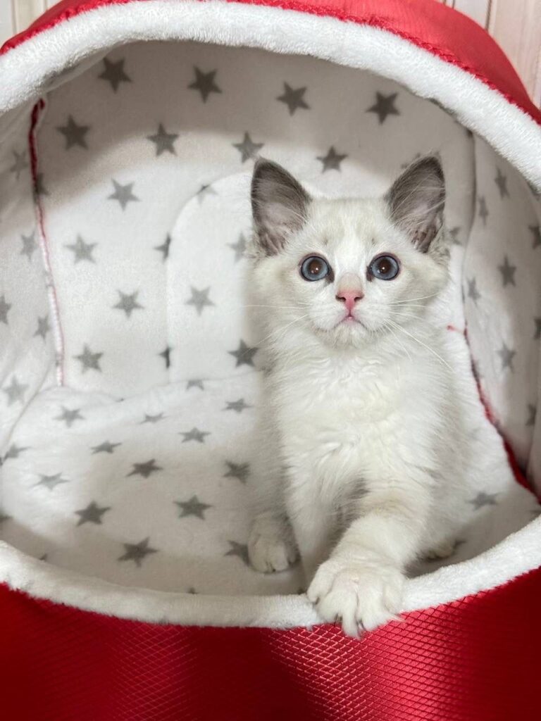 This incredibly cute kitten is a Ragdoll, a breed renowned for its affectionate nature, striking blue eyes, and soft, semi-longhaired coat. Based on your request, we can refer to this little boy as Tucker, an adorable Ragdoll kitten. These cats are one of the largest domestic breeds, but they are gentle giants, slow to mature and often not reaching their full size until they are around four years old. Tucker, like all purebred Ragdoll kittens, was likely born completely white, with his beautiful colorpoint markings developing over his first two years of life.